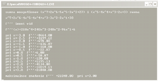 maksimalnoe zna4enie f'''''' =',fmax:3:2,' pri x=',xmax:3:2 );;;('
