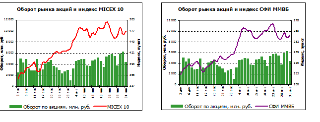 СФИ ММВБ – 255 пунктов, для ММВБ 10 – 458 пунктов), что может свидетельствовать