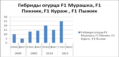 показатели продаж гибридов огурцов в 2008-2011 гг.