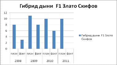 показатели продаж гибридов дыни в 2008-2011 гг.