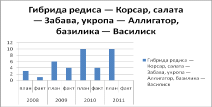 показатели продаж гибридов зелени и редиса в 2008-2011 гг.