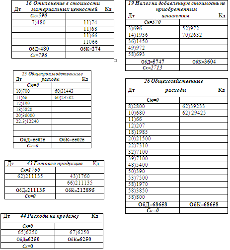 баланса или остатки на счетах 10, 11, 15, 16, 19, 20, 21, 23, 29, 40, 44.