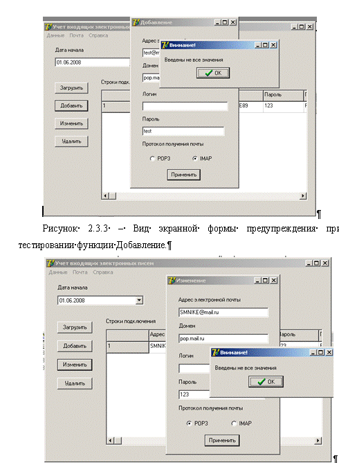 пользователю об ошибке - Рисунок 5. Рисунок 6 демонстрирует загрузку данных