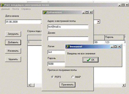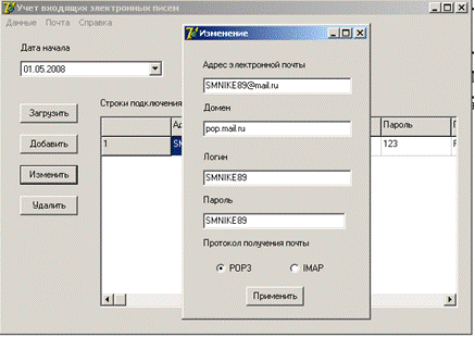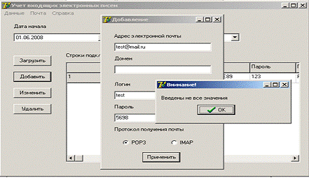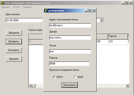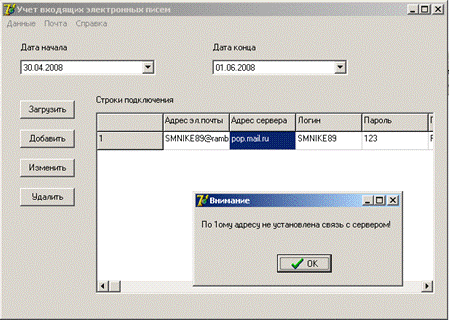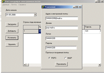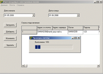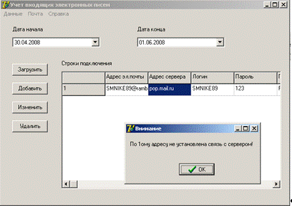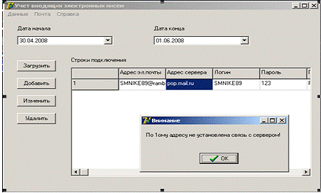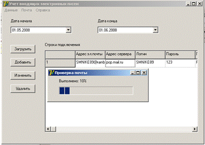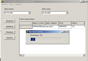 входящих электронных писем» осуществляет соеденение с почтовым сервером по