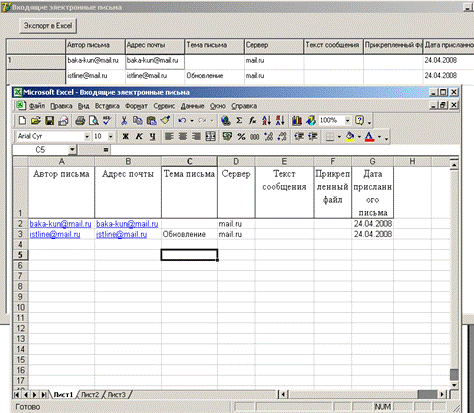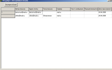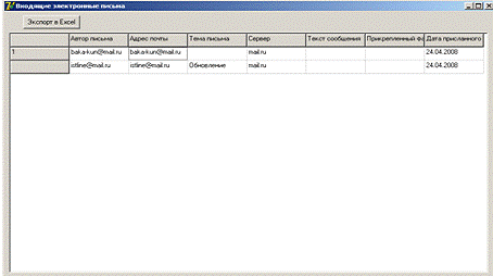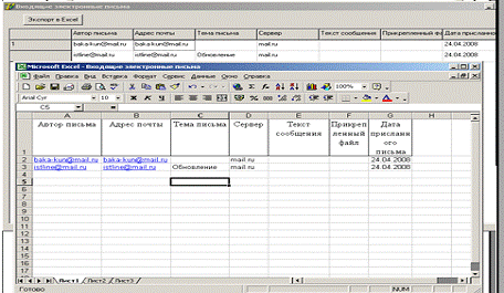 писем. При желании пользователь может экспортировать данные в эксель. (рисунок
