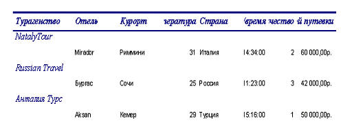 информацию о турах в различные страны, курорты и отели, а также информацию о