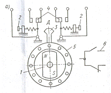 и подвижной части магнитной системы (якорь 6) с установленными на ней
