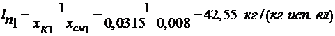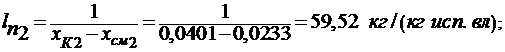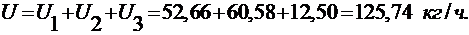I корпусе W1 = 1,5 · 2/(1 + 2) = 1 кг/с;