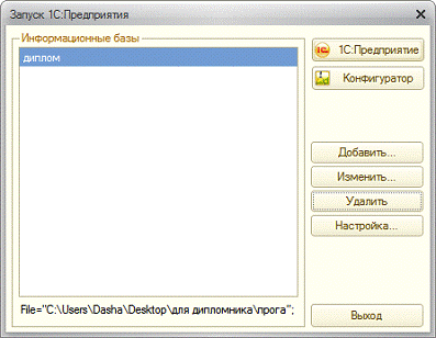 .4 Создание проекта в программе «1С: Предприятие» для
