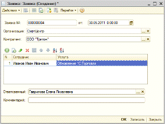 .5.1 Реализация документа «Заявка»
