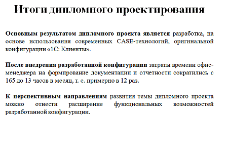 Слайд 11. Итоги дипломного проектирования