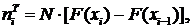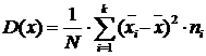 значений в i-й интервал; N - общее количество