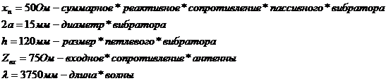петлевого вибратора, суммарное реактивное сопротивление пассивного вибратора
