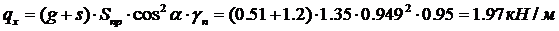 Временная снеговая нагрузка для II снегового района Sq = 1.2;