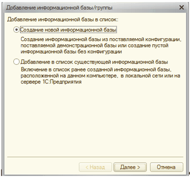создать новую информационную базу (рисунок 2.4), нажав на соответствующую