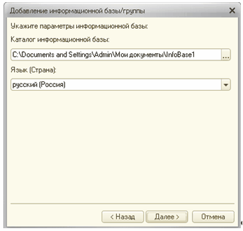 Рисунок 2.6 - Путь к папке хранения информационной базы