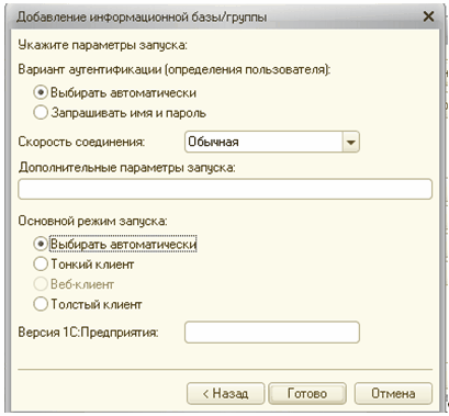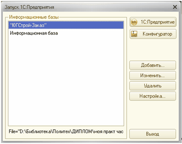 Рисунок 2.3 - Окно запуска «1С: Предприятия»