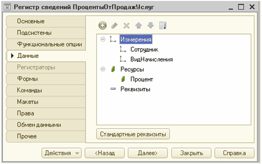 Далее во вкладке «Данные» вводим реквизиты справочника, указывая тип