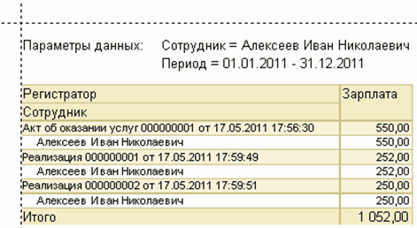 Слайд 7 - Пример отчета «Договоры сотрудников», формируемого
