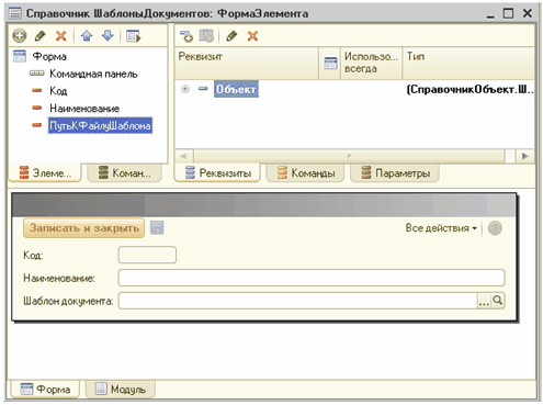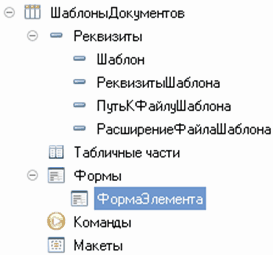 Затем во вкладке «Формы» создаем форму элемента для справочника