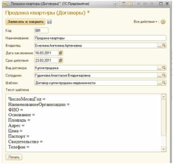 Рисунок 2.11 - Присвоение имени справочнику «Договоры»