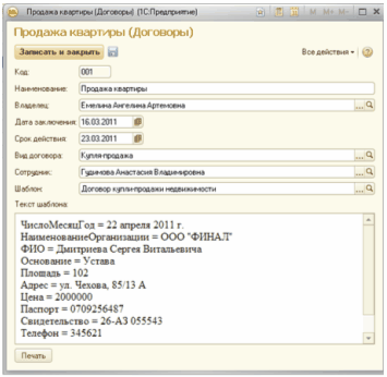 «1С:Предприятие 8». Каждая форма сущности в приложении имеет свою форму. В свою