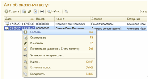 2.5.1 Реализация документа «АктОбОказанииУслуг»