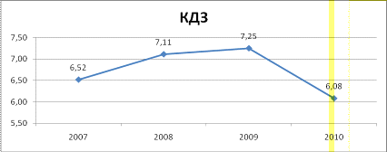 изменения продолжительности финансового цикла за 2007-2010 годы