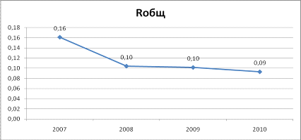 показателя рентабельности производственных фондов за 2007-2010 годы