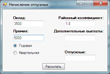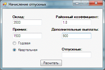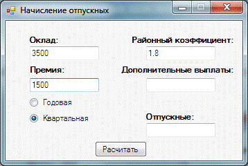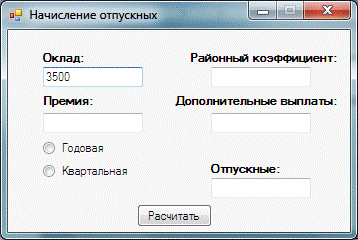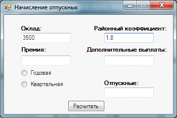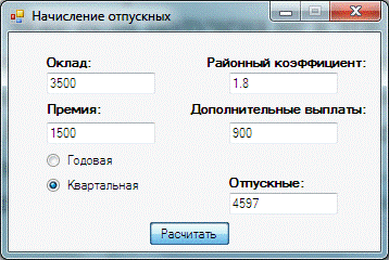 начисления отпускных» состоит в разработке программы - начисления отпускных,