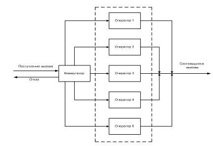 Автоматический коммутатор переключает очередного абонента на того оператора, у