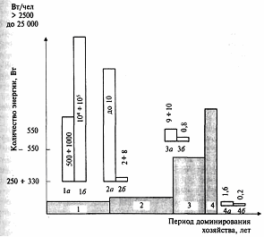 скотоводство (4а) и современное земледелие (46). По горизонтали - длительность
