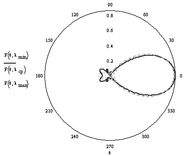 будем иметь диаграммы направленности для трех значений длин волн: lmin, lср, lмах: