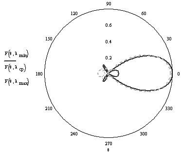 иметь диаграммы направленности для трех значений длин волн: lmin, lср, lмах: