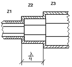 Согласование антенны с входным сопротивлением Z3=120 Ом с коаксиалом Z1=75 Ом осуществляют куском коаксиала с
