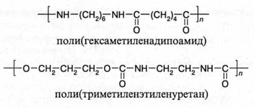 поливинилхлорид [-СН2-СНСl-]n, полистирол [-CH2-CHC6H5-]n.