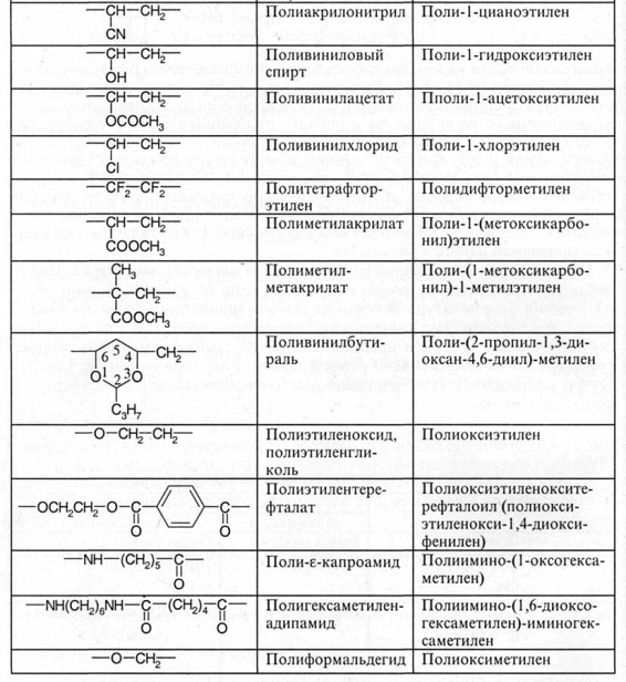 за которой следуют названия мономеров (номенклатура, базирующаяся на