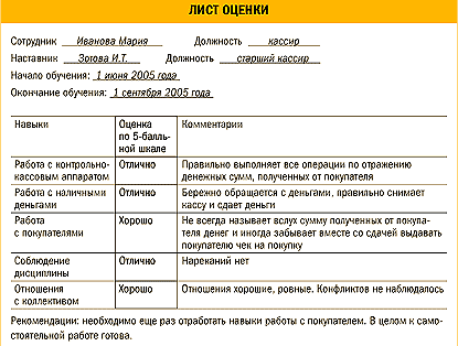 продавец магазина, для его подготовки необходимы ряд специальных тренингов по