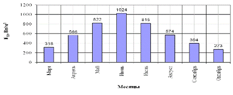 Средняя мощность потока солнечной радиации для этих месяцев равна:
