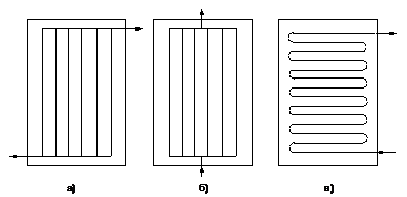 или змеевика (в). Соединение по схеме б менее удачно, чем по схеме а, так как