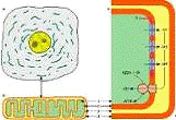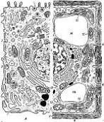 растительная клетка: 1 - ядро с хроматином и ядрышком; 2 - клеточная