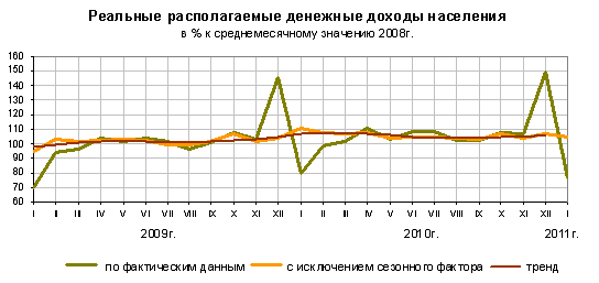 Реальные располагаемые денежные доходы в январе 2011г.
