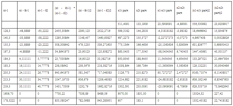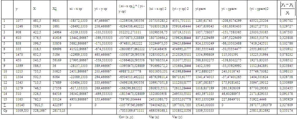 * х + b, вспомогательные расчеты проводим в таблице (стр. 8)