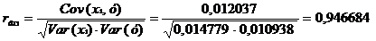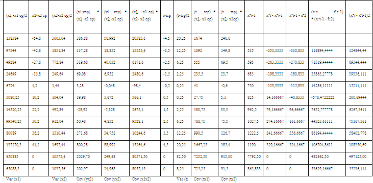 а затем перемножим эти отклонения и найдём среднее арифметическое полученной