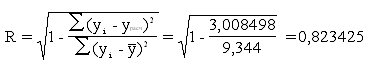 линейной модели - коэффициент корреляции), коэффициент детерминации и среднюю