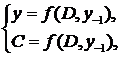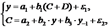 две эндогенные переменные (у и С) и две экзогенные переменные (D и у-1 ).