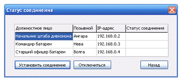 TObject);.Close;;TfConnect.FormCreate(Sender: TObject);.Cells[0,0] := 'Должностное лицо';.Cells[1,0] := 'Позывной';.Cells[2,0] := 'IP-адрес';.Cells[3,0] := 'Статус