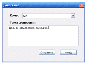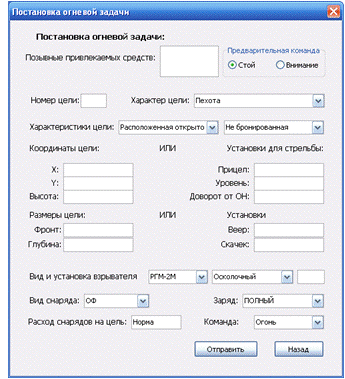 Передача сообщения на выполнение огневой задачи с автоматизированного
