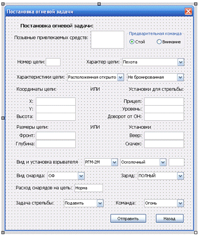 Постановка задачи огневым подразделениям на открытие огня по отдельной