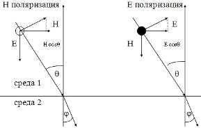 два случая: Е - поляризации и Н- поляризации, которые отличаются ориентацией